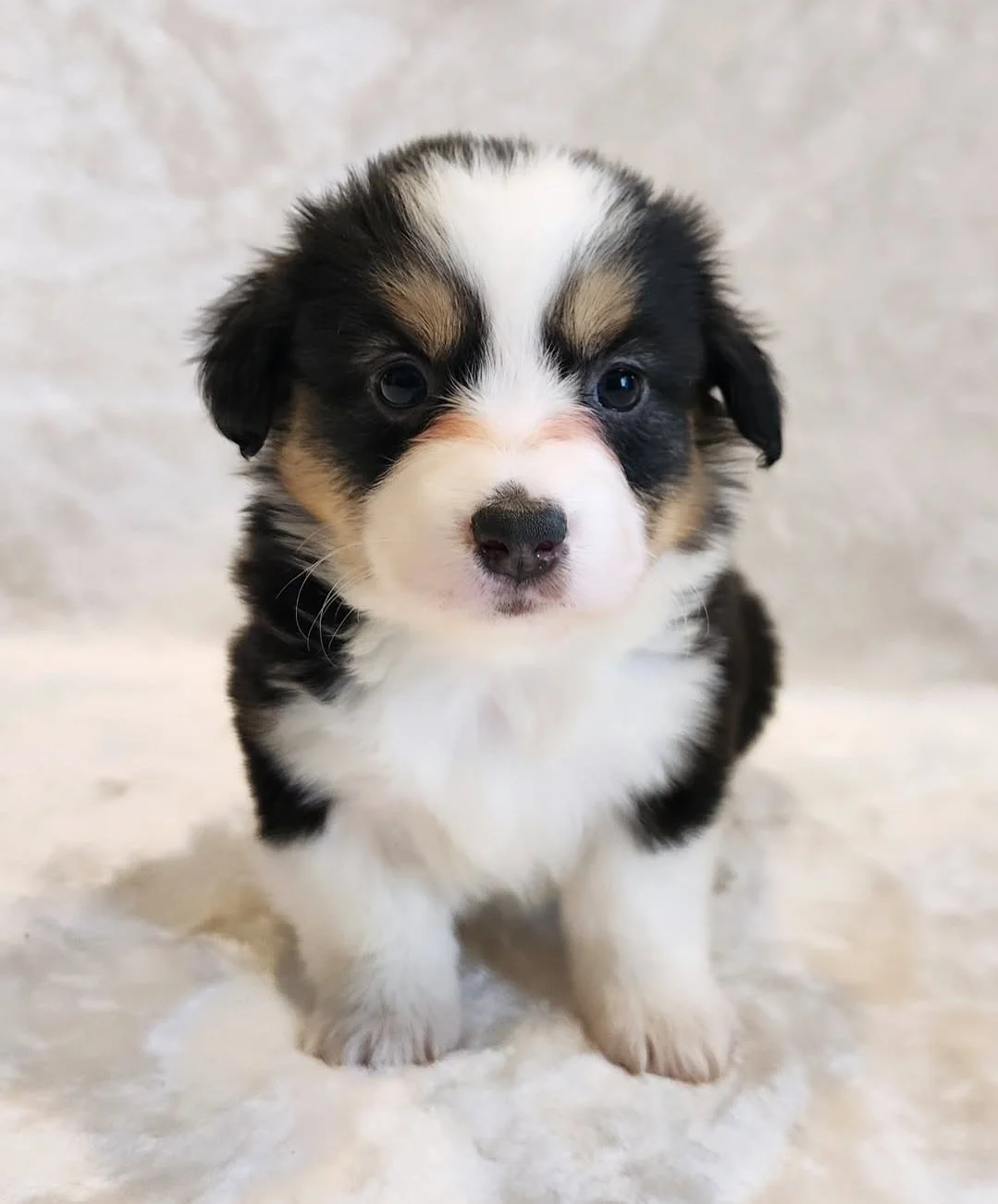 This handsome boy has his tail docked and dewclaws removed. His little butt is always wagging. He is one of the first ones to greet you ❤️. He has a very outgoing personality. He does have 1 blue eye!